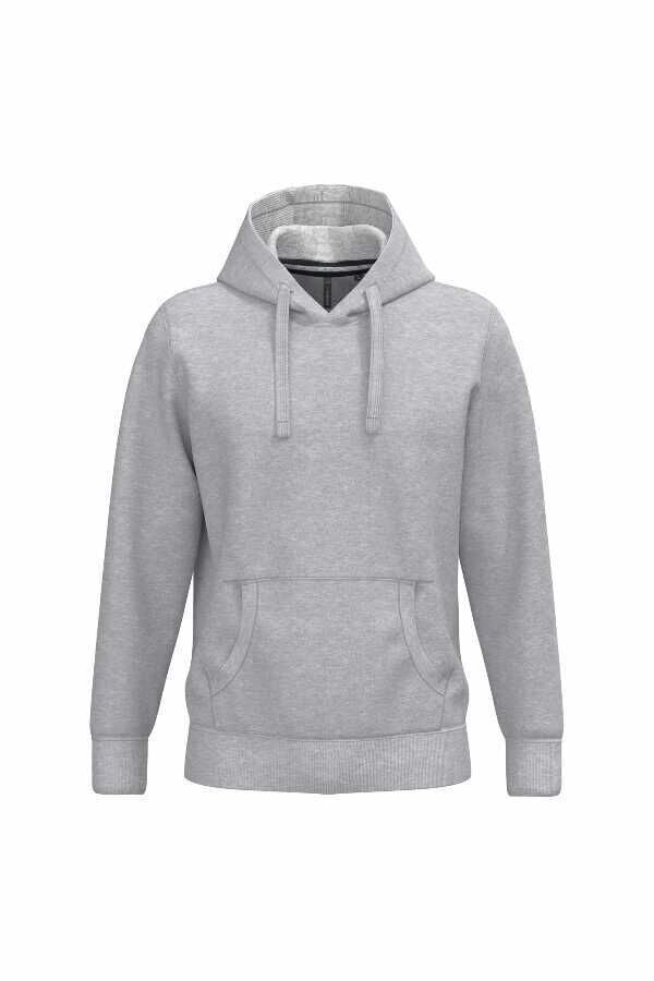 80% coton / 20% polyester (Ash Heather : 79% coton / 20% polyester / 1% viscose). Surface extérieure 100% coton. Traitement LSF (Low Shrinkage Fleece : molleton prérétréci). Molleton gratté 3 fils en coton peigné. Manches montées. Bande de propreté contrastée à l'encolure (Navy pour le coloris Oxford Grey et Ash Heather ; Oxford Grey pour tous les autres coloris). Capuche doublée en nid d'abeille avec cordon de serrage. Poches kangourou. Finition bord-côte poignets et de bas de vêtement.